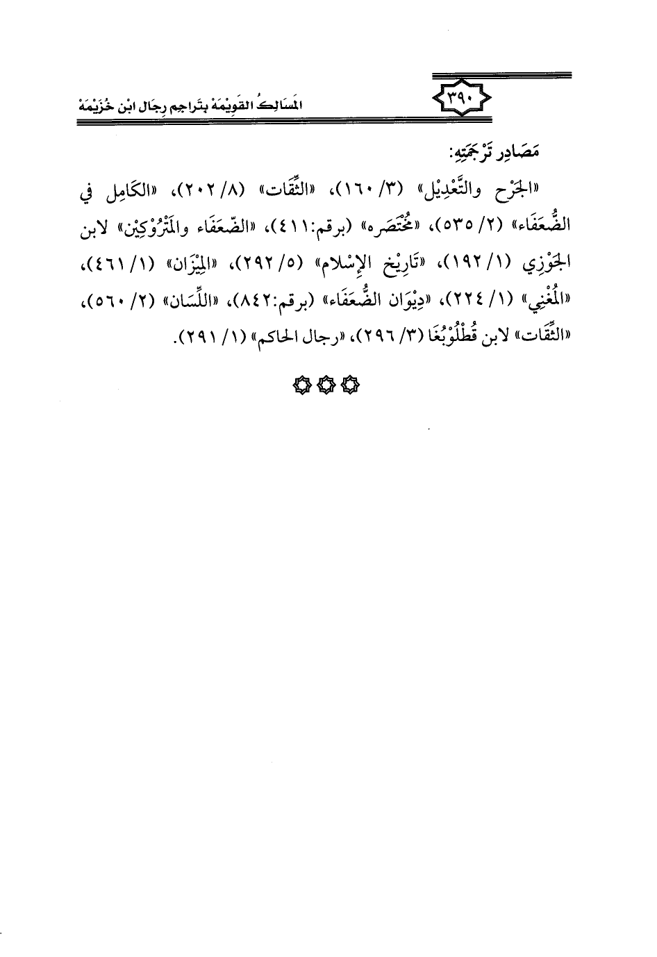 كتاب المسالك القويمة بتراجم رجال ابن خزيمة في الصحيح، والتوحيد، والفوائد (اسم الجزء: 1)