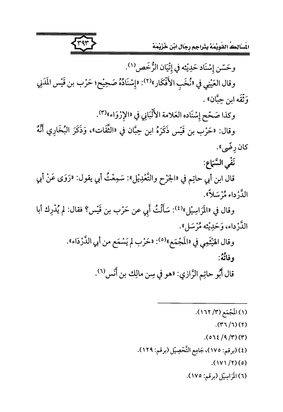 وقال الهَيْثَمِي في "المَجْمَع" (٥): "حَرْب لم يَسْمَع من أبي الدَّرْدَاء".