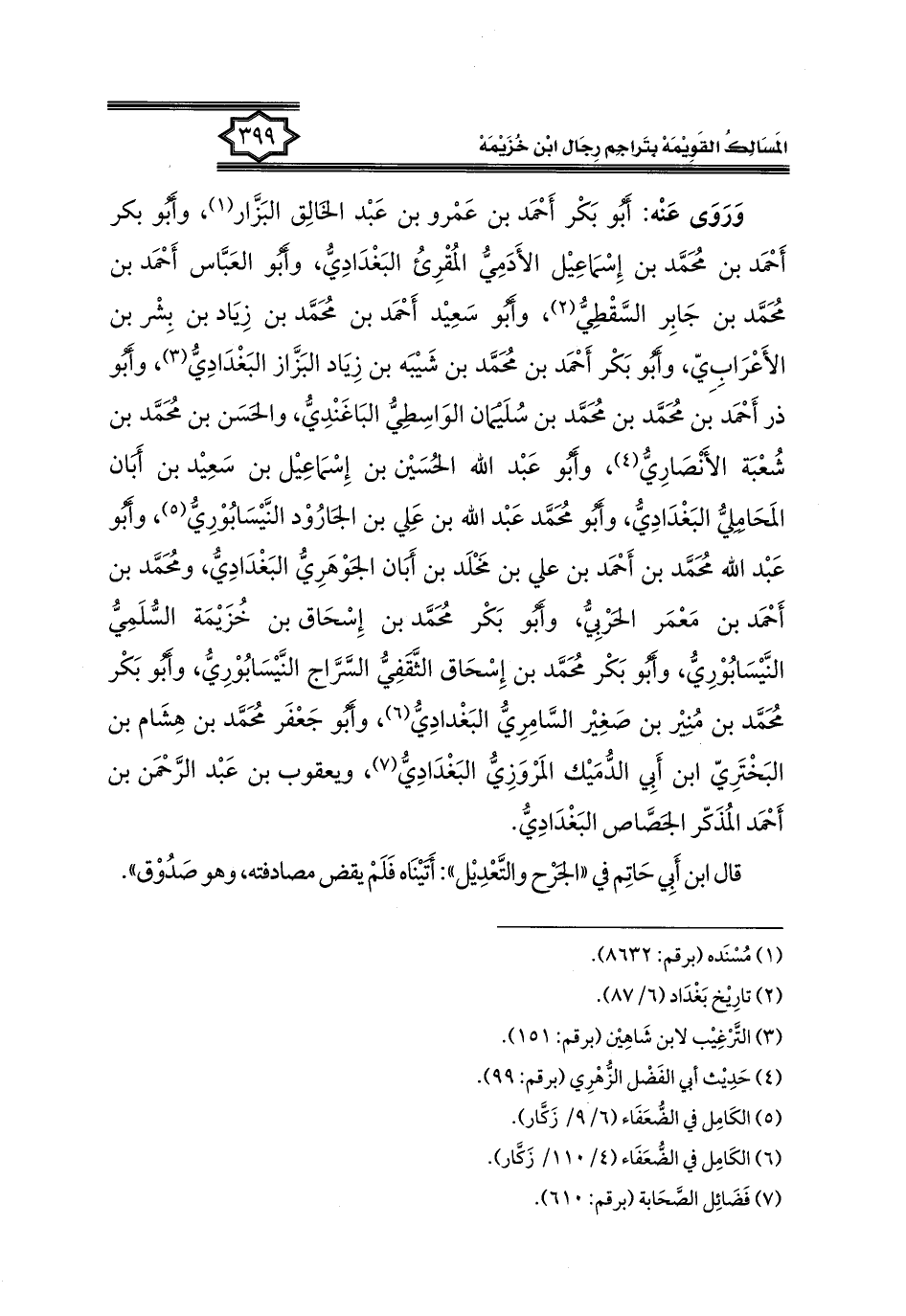 كتاب المسالك القويمة بتراجم رجال ابن خزيمة في الصحيح، والتوحيد، والفوائد (اسم الجزء: 1)