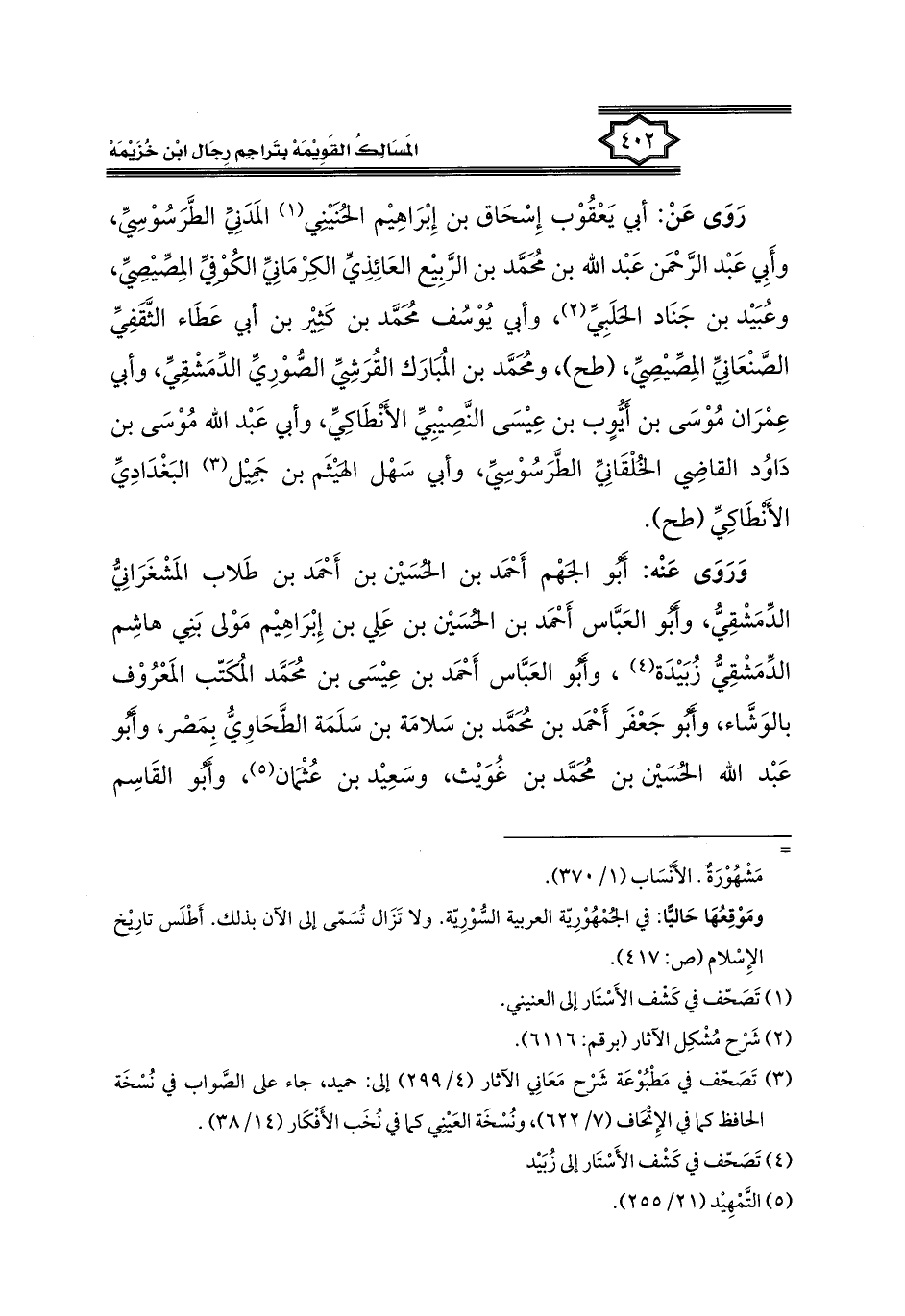 كتاب المسالك القويمة بتراجم رجال ابن خزيمة في الصحيح، والتوحيد، والفوائد (اسم الجزء: 1)