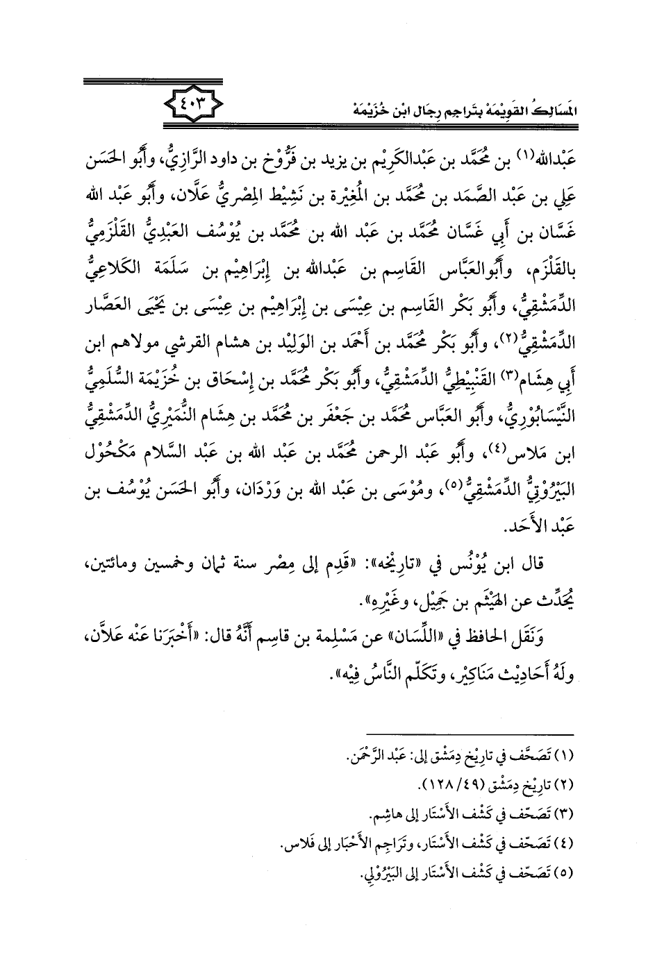 كتاب المسالك القويمة بتراجم رجال ابن خزيمة في الصحيح، والتوحيد، والفوائد (اسم الجزء: 1)