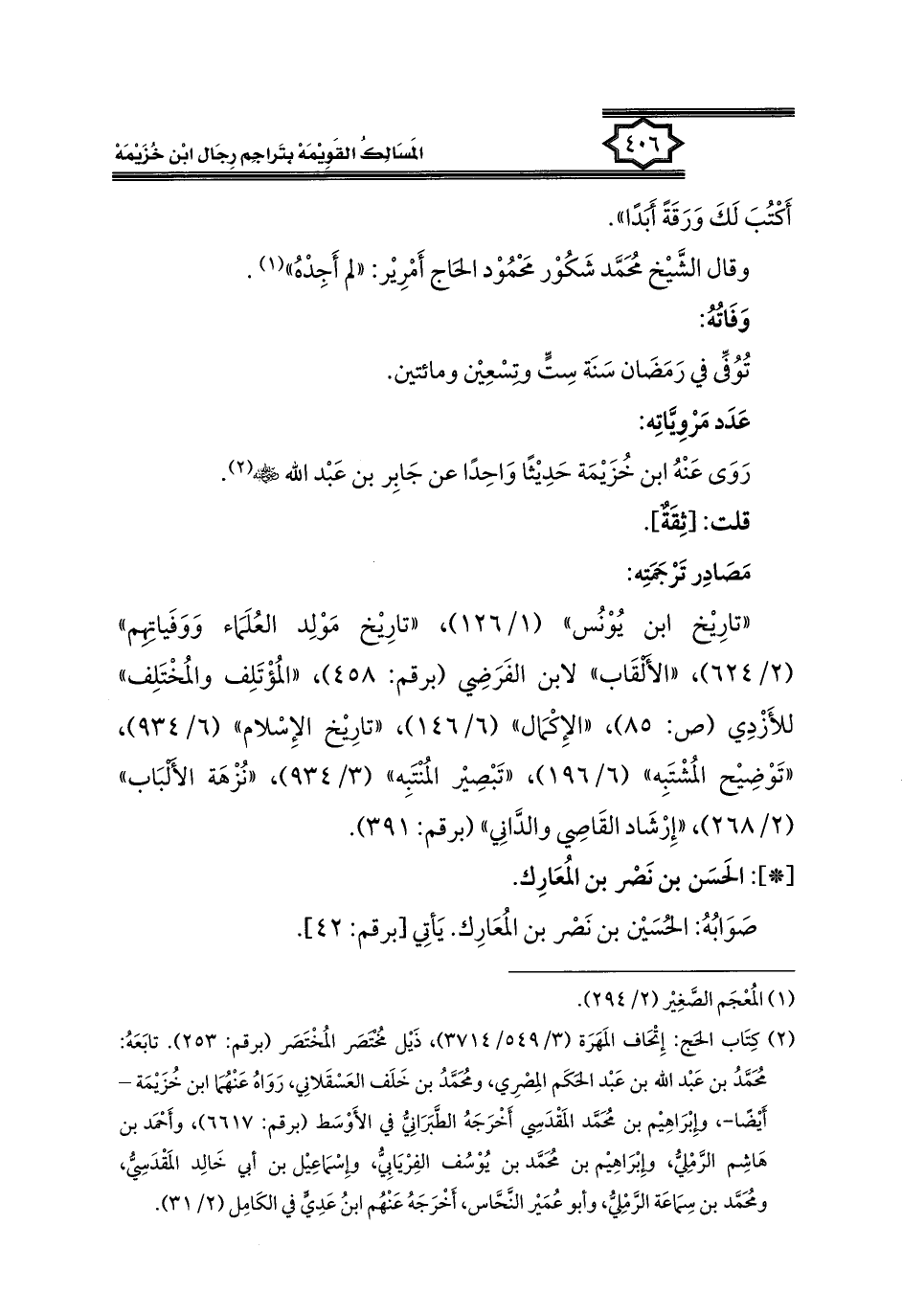 كتاب المسالك القويمة بتراجم رجال ابن خزيمة في الصحيح، والتوحيد، والفوائد (اسم الجزء: 1)