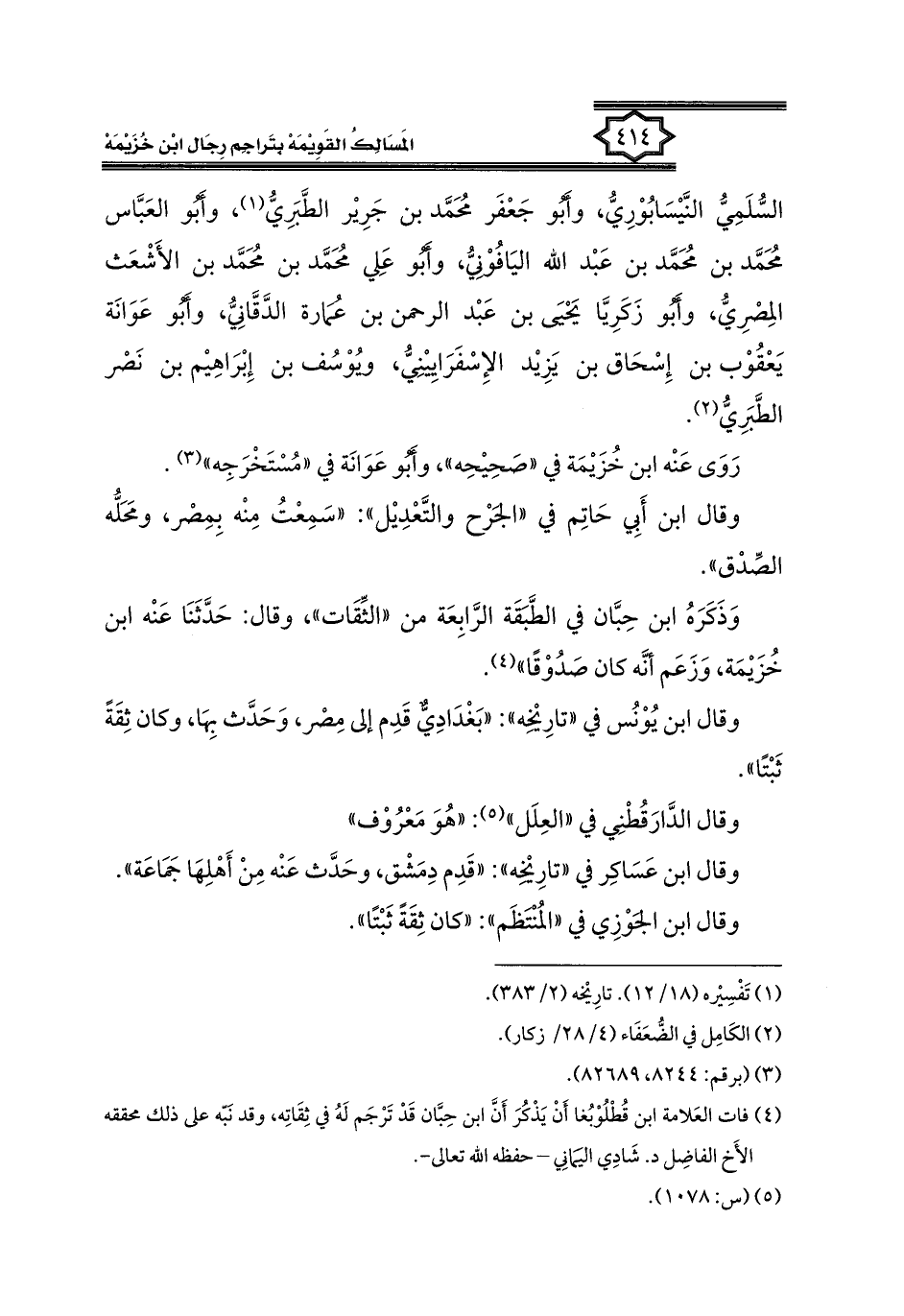 كتاب المسالك القويمة بتراجم رجال ابن خزيمة في الصحيح، والتوحيد، والفوائد (اسم الجزء: 1)
