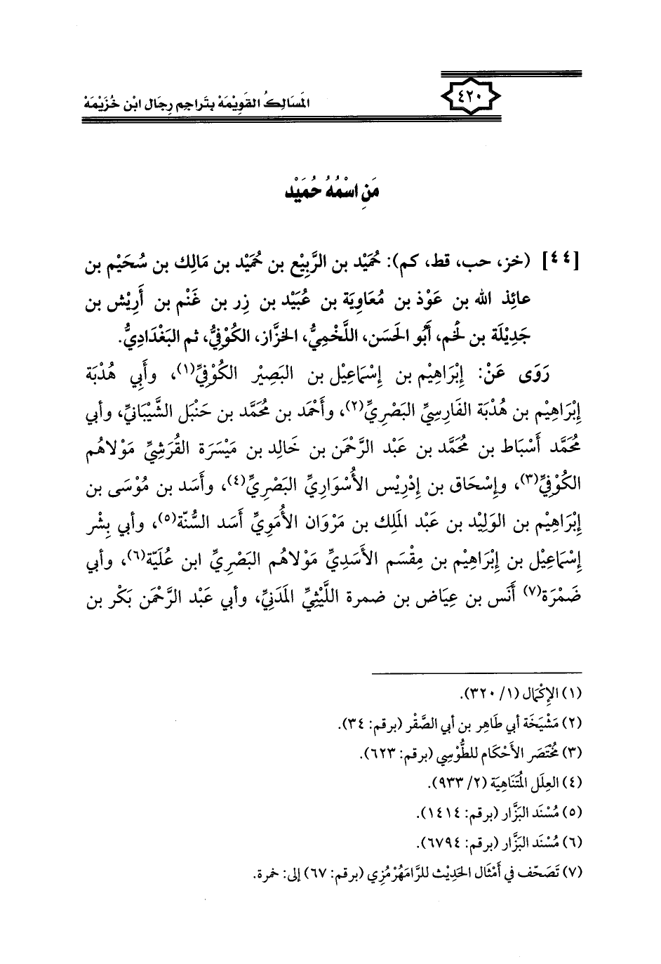 كتاب المسالك القويمة بتراجم رجال ابن خزيمة في الصحيح، والتوحيد، والفوائد (اسم الجزء: 1)