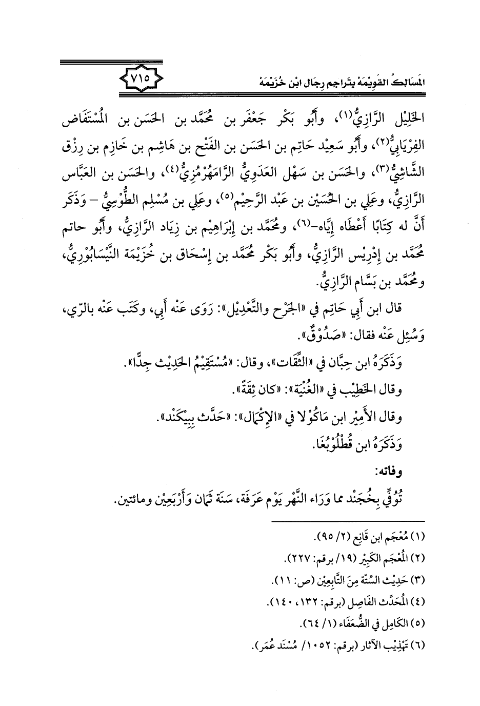 كتاب المسالك القويمة بتراجم رجال ابن خزيمة في الصحيح، والتوحيد، والفوائد (اسم الجزء: 2)