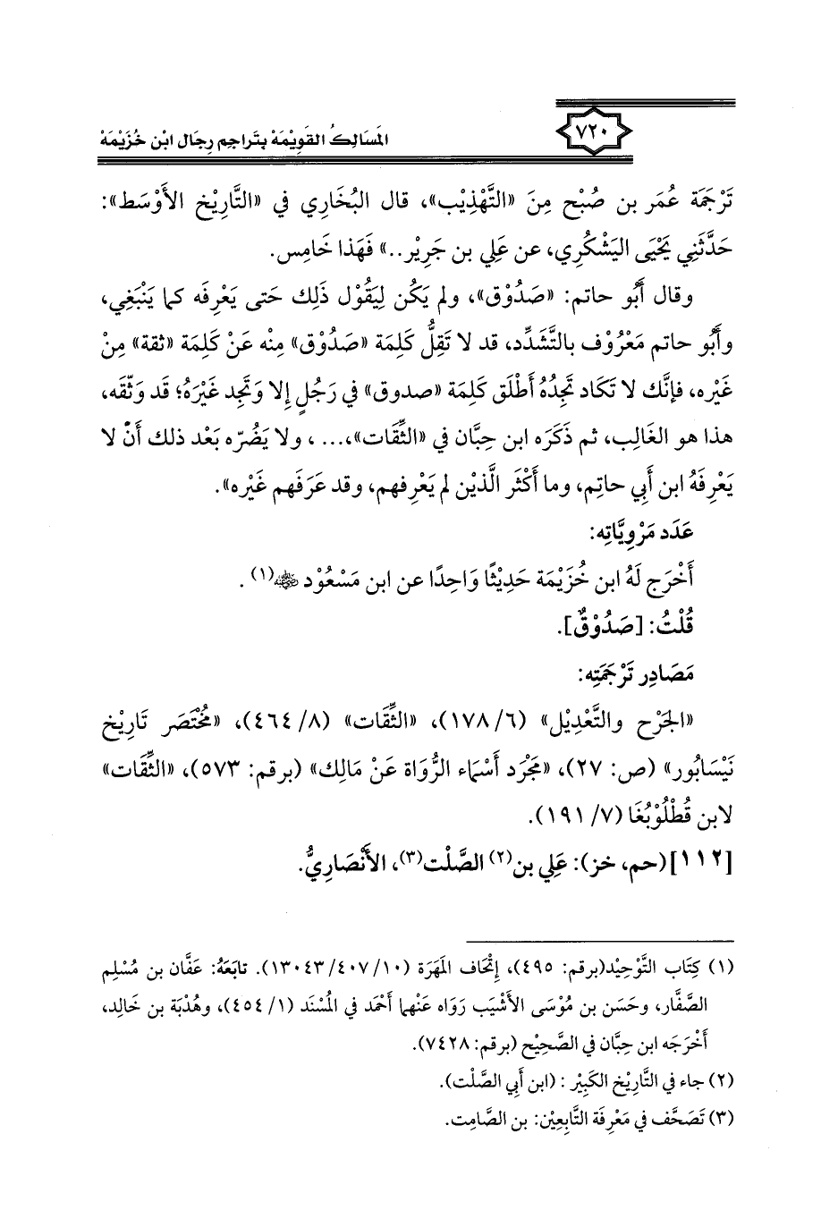 كتاب المسالك القويمة بتراجم رجال ابن خزيمة في الصحيح، والتوحيد، والفوائد (اسم الجزء: 2)