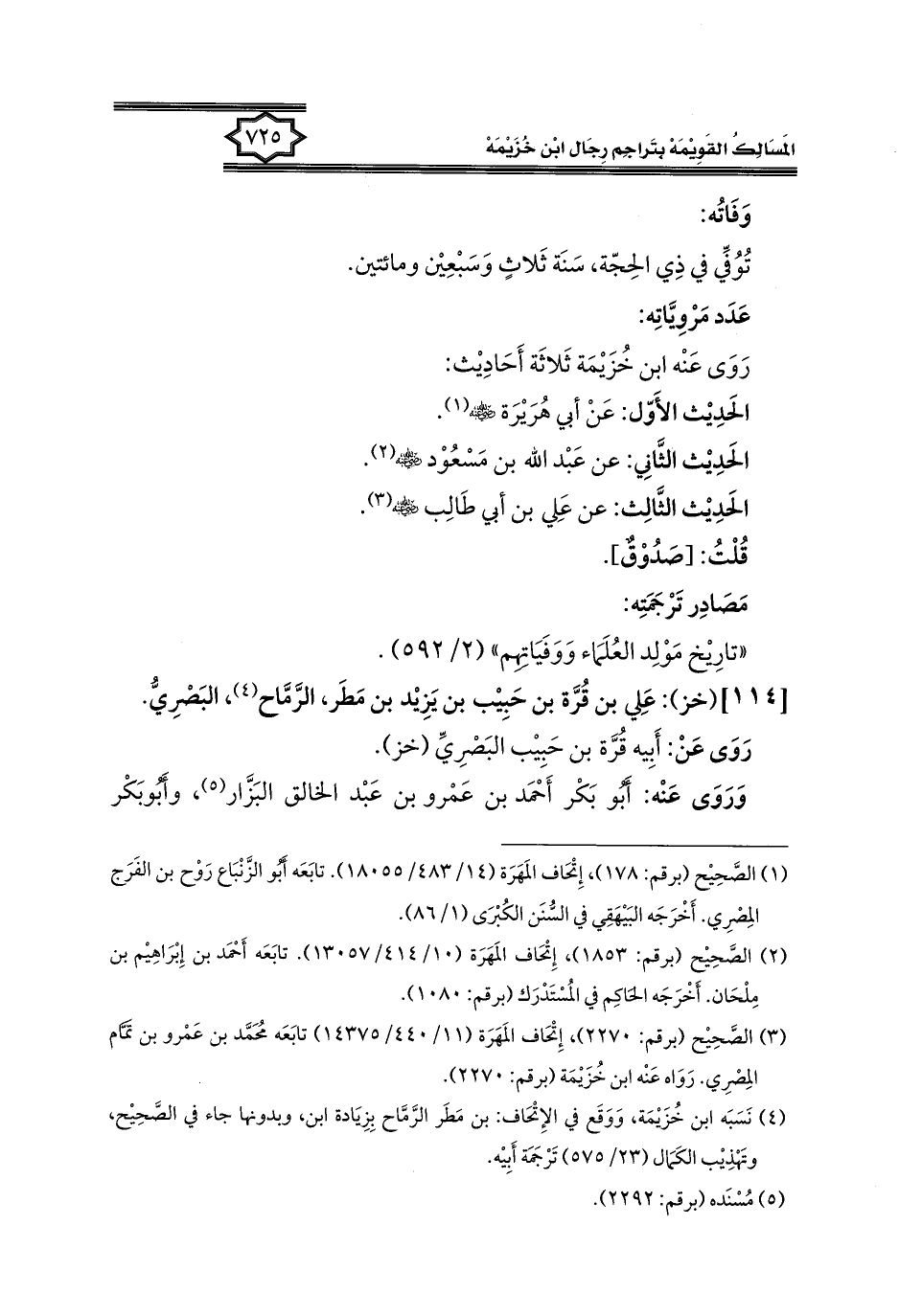 كتاب المسالك القويمة بتراجم رجال ابن خزيمة في الصحيح، والتوحيد، والفوائد (اسم الجزء: 2)