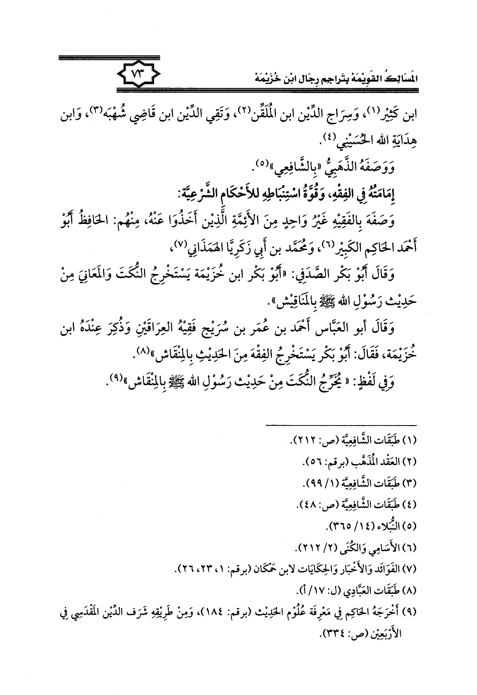 كتاب المسالك القويمة بتراجم رجال ابن خزيمة في الصحيح، والتوحيد، والفوائد (اسم الجزء: 1)