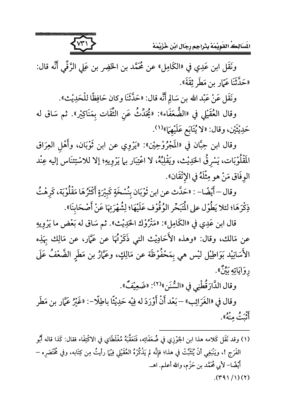 كتاب المسالك القويمة بتراجم رجال ابن خزيمة في الصحيح، والتوحيد، والفوائد (اسم الجزء: 2)