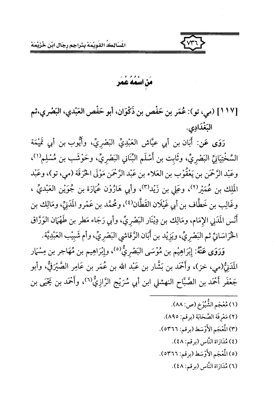 كتاب المسالك القويمة بتراجم رجال ابن خزيمة في الصحيح، والتوحيد، والفوائد (اسم الجزء: 2)