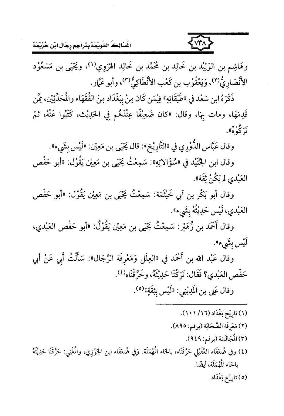 كتاب المسالك القويمة بتراجم رجال ابن خزيمة في الصحيح، والتوحيد، والفوائد (اسم الجزء: 2)