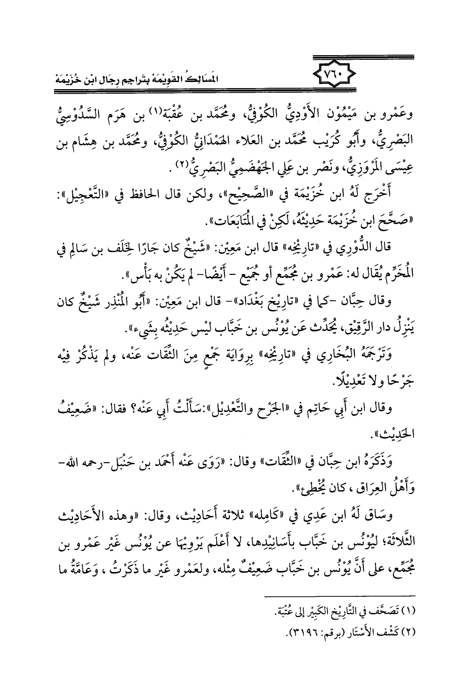 كتاب المسالك القويمة بتراجم رجال ابن خزيمة في الصحيح، والتوحيد، والفوائد (اسم الجزء: 2)
