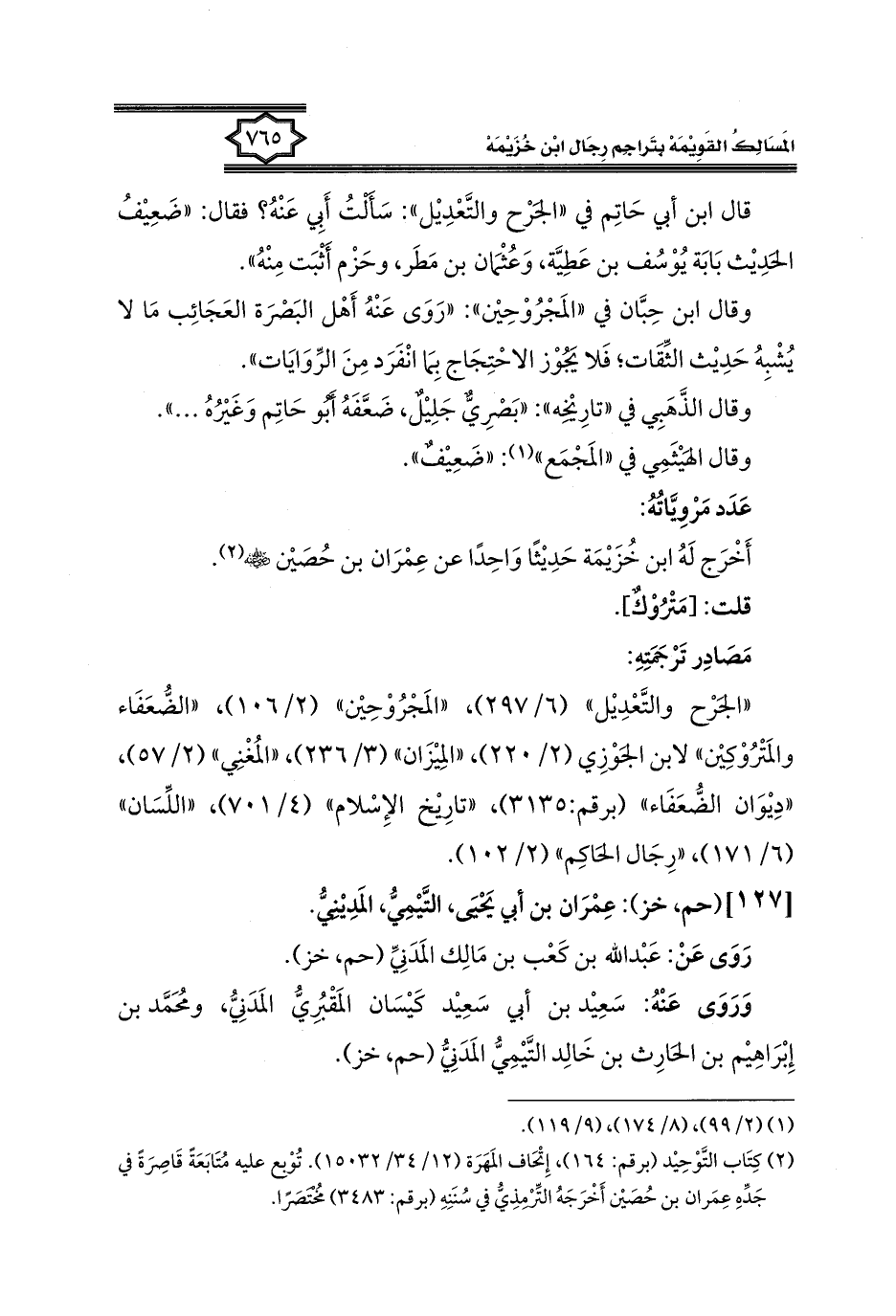 كتاب المسالك القويمة بتراجم رجال ابن خزيمة في الصحيح، والتوحيد، والفوائد (اسم الجزء: 2)
