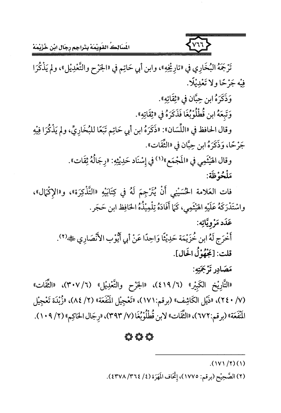 كتاب المسالك القويمة بتراجم رجال ابن خزيمة في الصحيح، والتوحيد، والفوائد (اسم الجزء: 2)