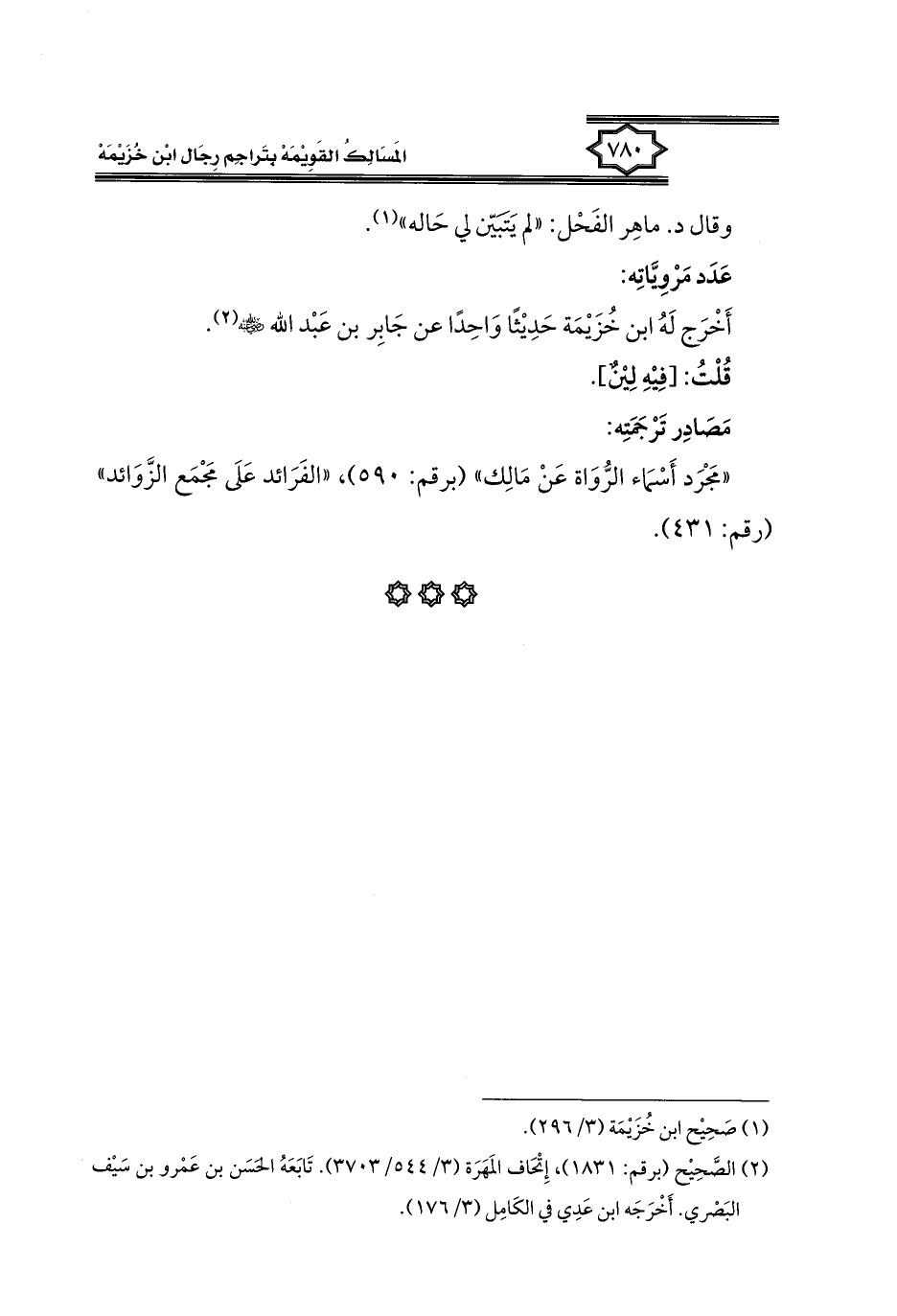 كتاب المسالك القويمة بتراجم رجال ابن خزيمة في الصحيح، والتوحيد، والفوائد (اسم الجزء: 2)