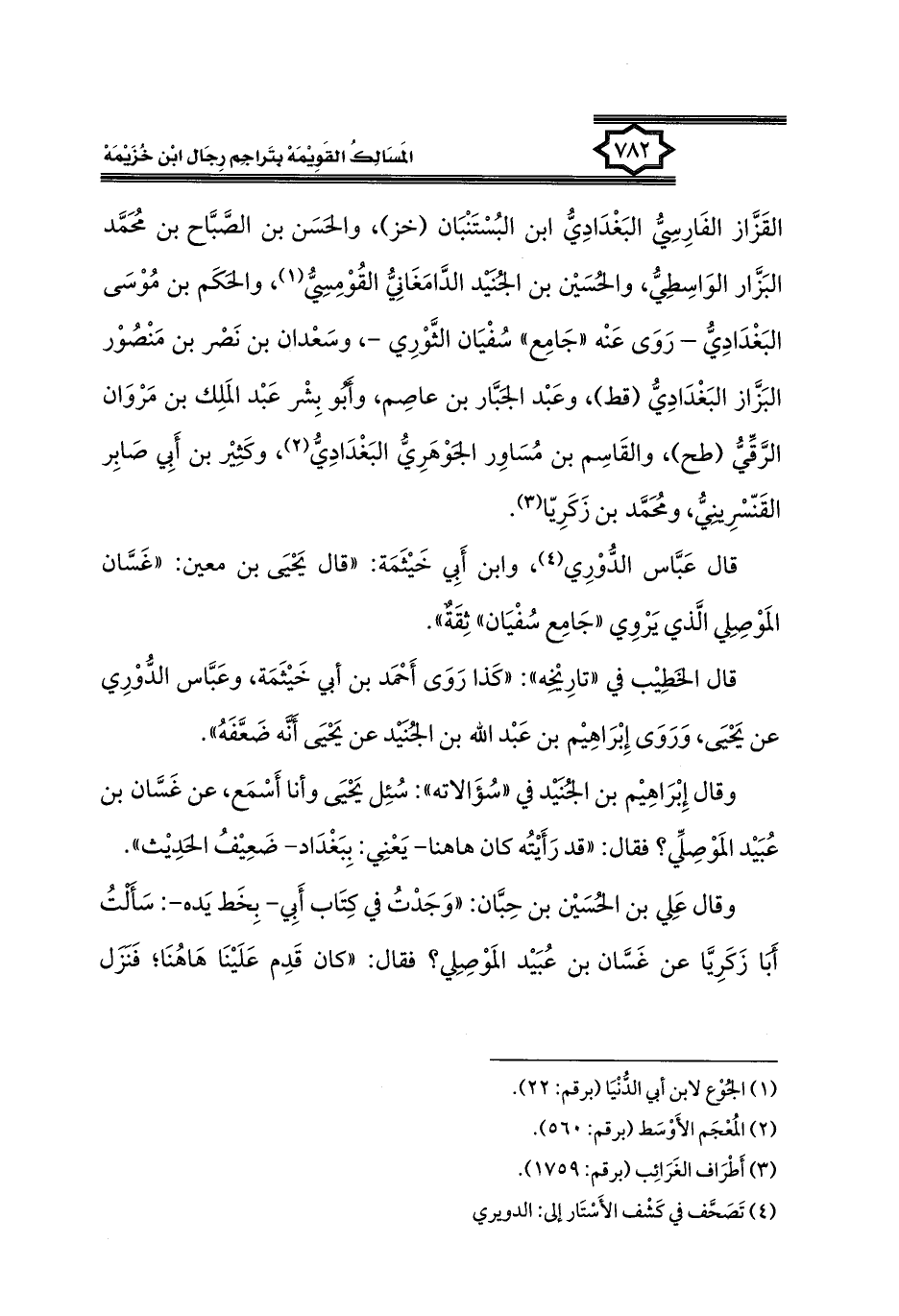 كتاب المسالك القويمة بتراجم رجال ابن خزيمة في الصحيح، والتوحيد، والفوائد (اسم الجزء: 2)
