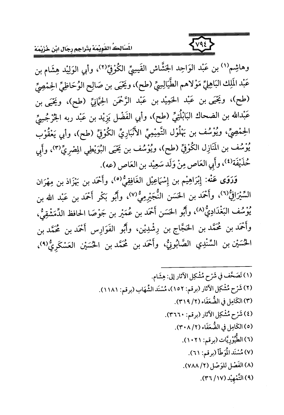 كتاب المسالك القويمة بتراجم رجال ابن خزيمة في الصحيح، والتوحيد، والفوائد (اسم الجزء: 2)