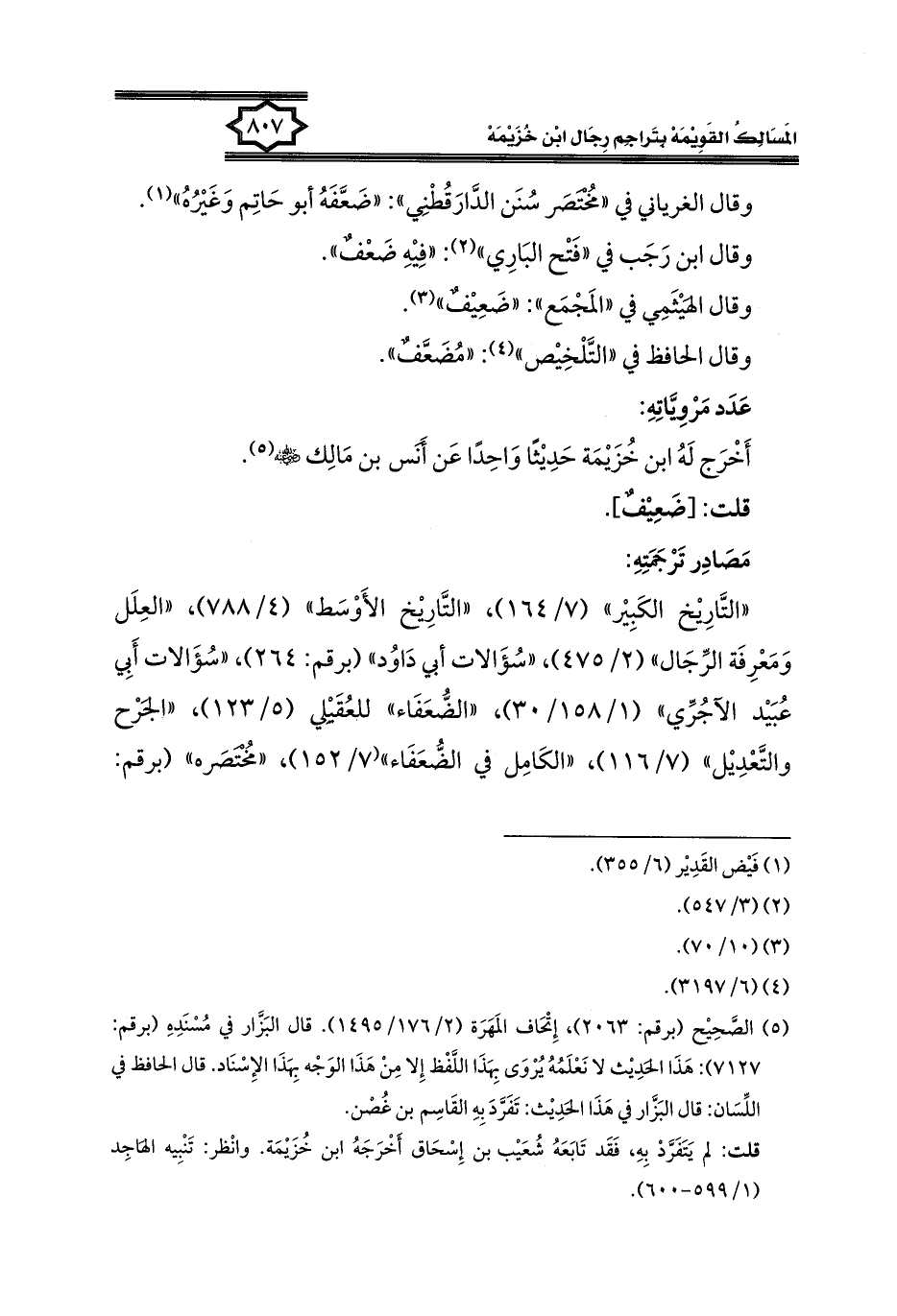 كتاب المسالك القويمة بتراجم رجال ابن خزيمة في الصحيح، والتوحيد، والفوائد (اسم الجزء: 2)