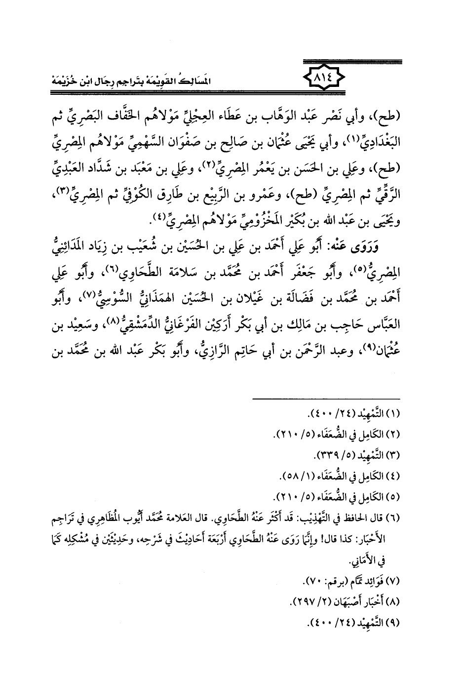 كتاب المسالك القويمة بتراجم رجال ابن خزيمة في الصحيح، والتوحيد، والفوائد (اسم الجزء: 2)