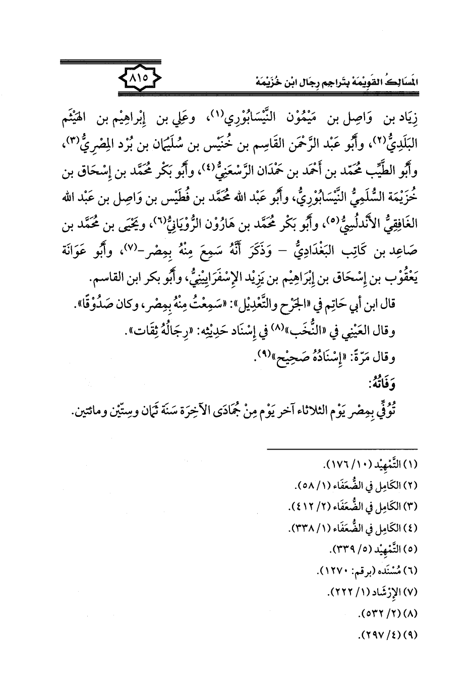 كتاب المسالك القويمة بتراجم رجال ابن خزيمة في الصحيح، والتوحيد، والفوائد (اسم الجزء: 2)