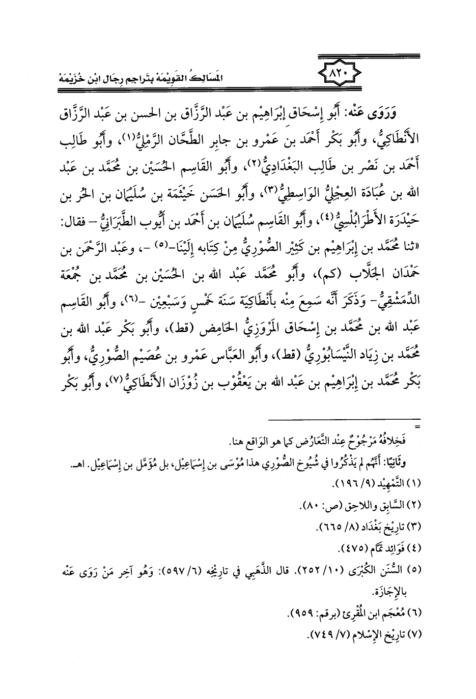 كتاب المسالك القويمة بتراجم رجال ابن خزيمة في الصحيح، والتوحيد، والفوائد (اسم الجزء: 2)