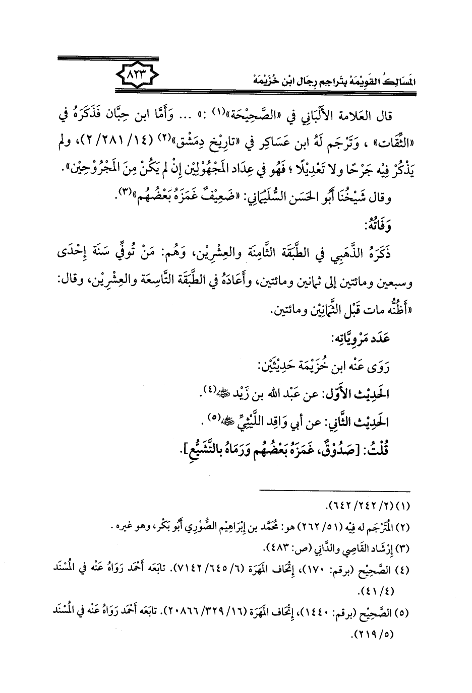 كتاب المسالك القويمة بتراجم رجال ابن خزيمة في الصحيح، والتوحيد، والفوائد (اسم الجزء: 2)