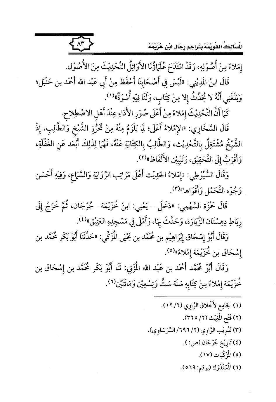 كتاب المسالك القويمة بتراجم رجال ابن خزيمة في الصحيح، والتوحيد، والفوائد (اسم الجزء: 1)