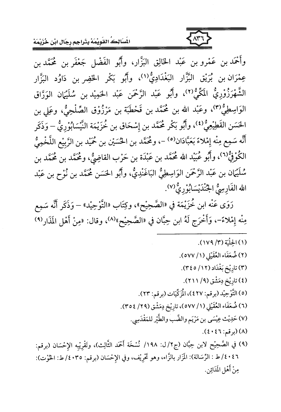 كتاب المسالك القويمة بتراجم رجال ابن خزيمة في الصحيح، والتوحيد، والفوائد (اسم الجزء: 2)