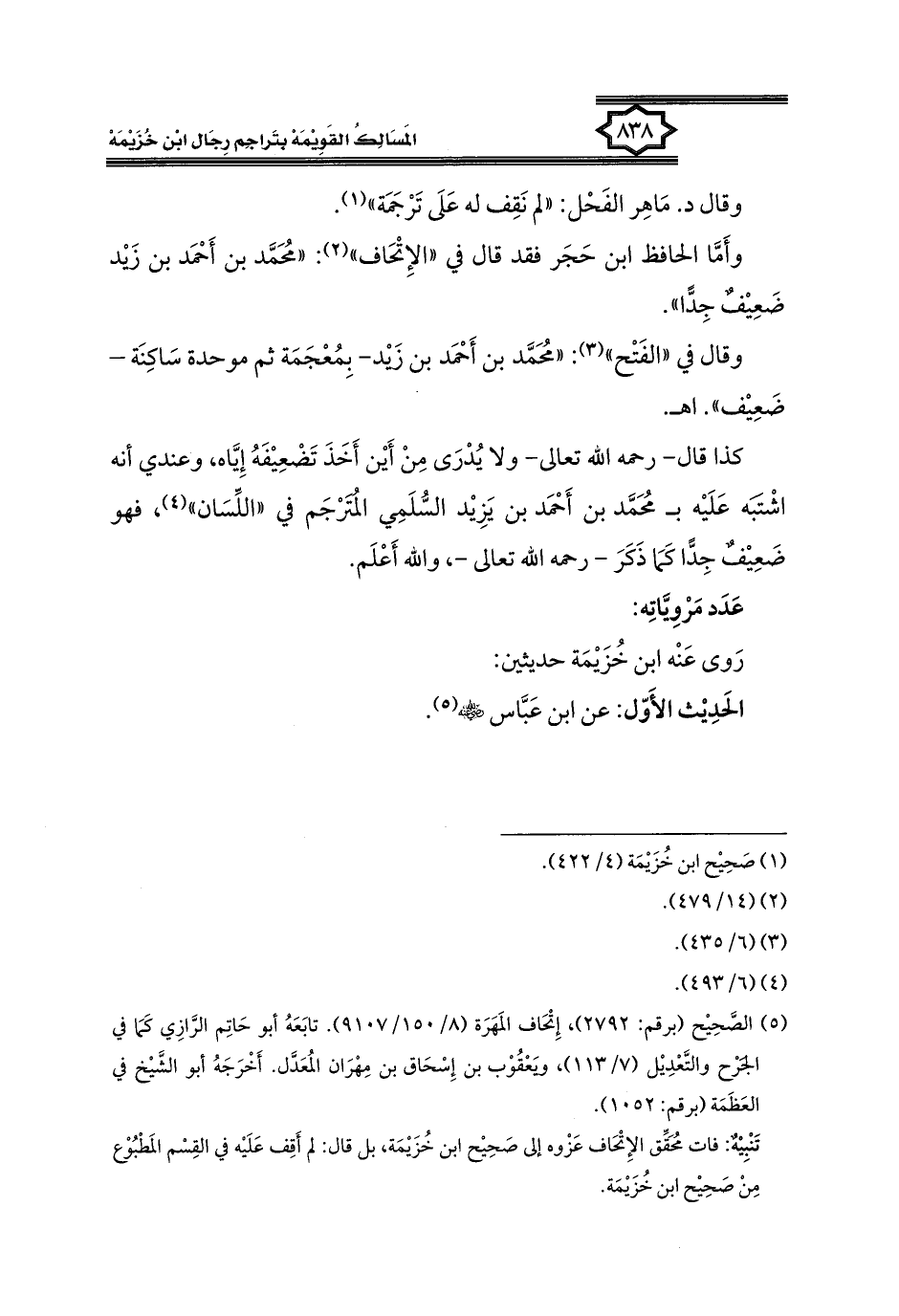 كتاب المسالك القويمة بتراجم رجال ابن خزيمة في الصحيح، والتوحيد، والفوائد (اسم الجزء: 2)