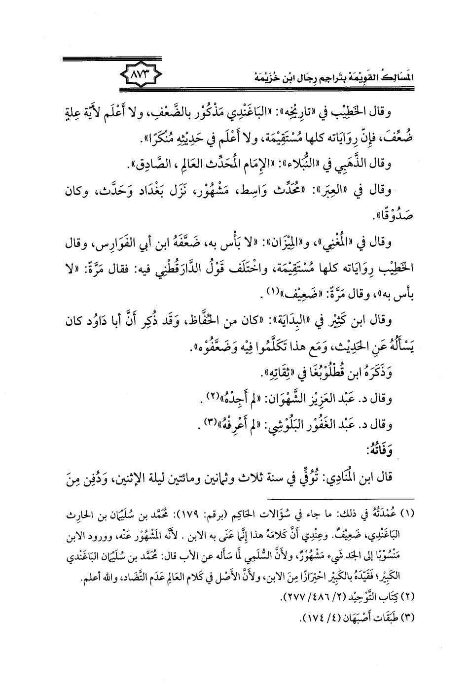 كتاب المسالك القويمة بتراجم رجال ابن خزيمة في الصحيح، والتوحيد، والفوائد (اسم الجزء: 2)