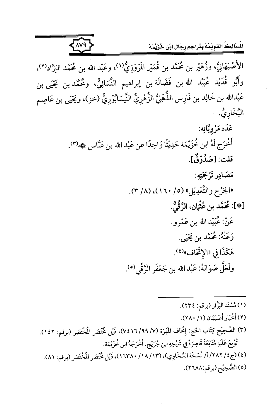 كتاب المسالك القويمة بتراجم رجال ابن خزيمة في الصحيح، والتوحيد، والفوائد (اسم الجزء: 2)