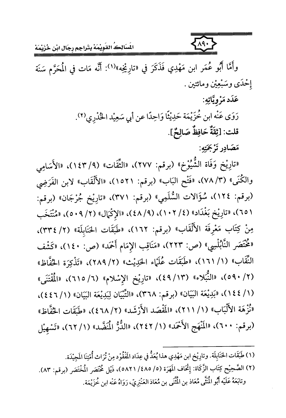 كتاب المسالك القويمة بتراجم رجال ابن خزيمة في الصحيح، والتوحيد، والفوائد (اسم الجزء: 2)