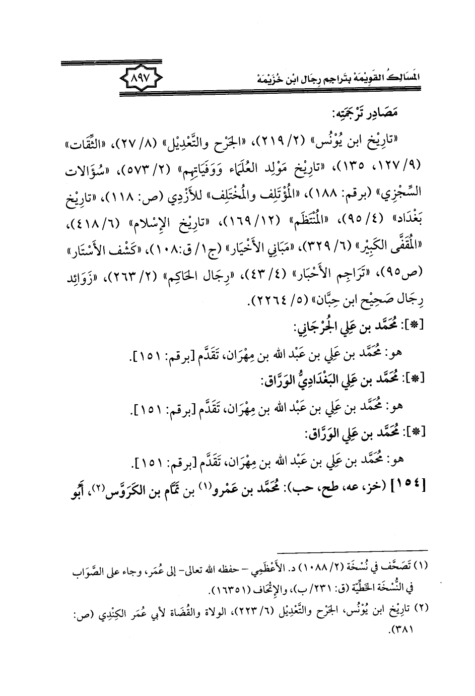 كتاب المسالك القويمة بتراجم رجال ابن خزيمة في الصحيح، والتوحيد، والفوائد (اسم الجزء: 2)