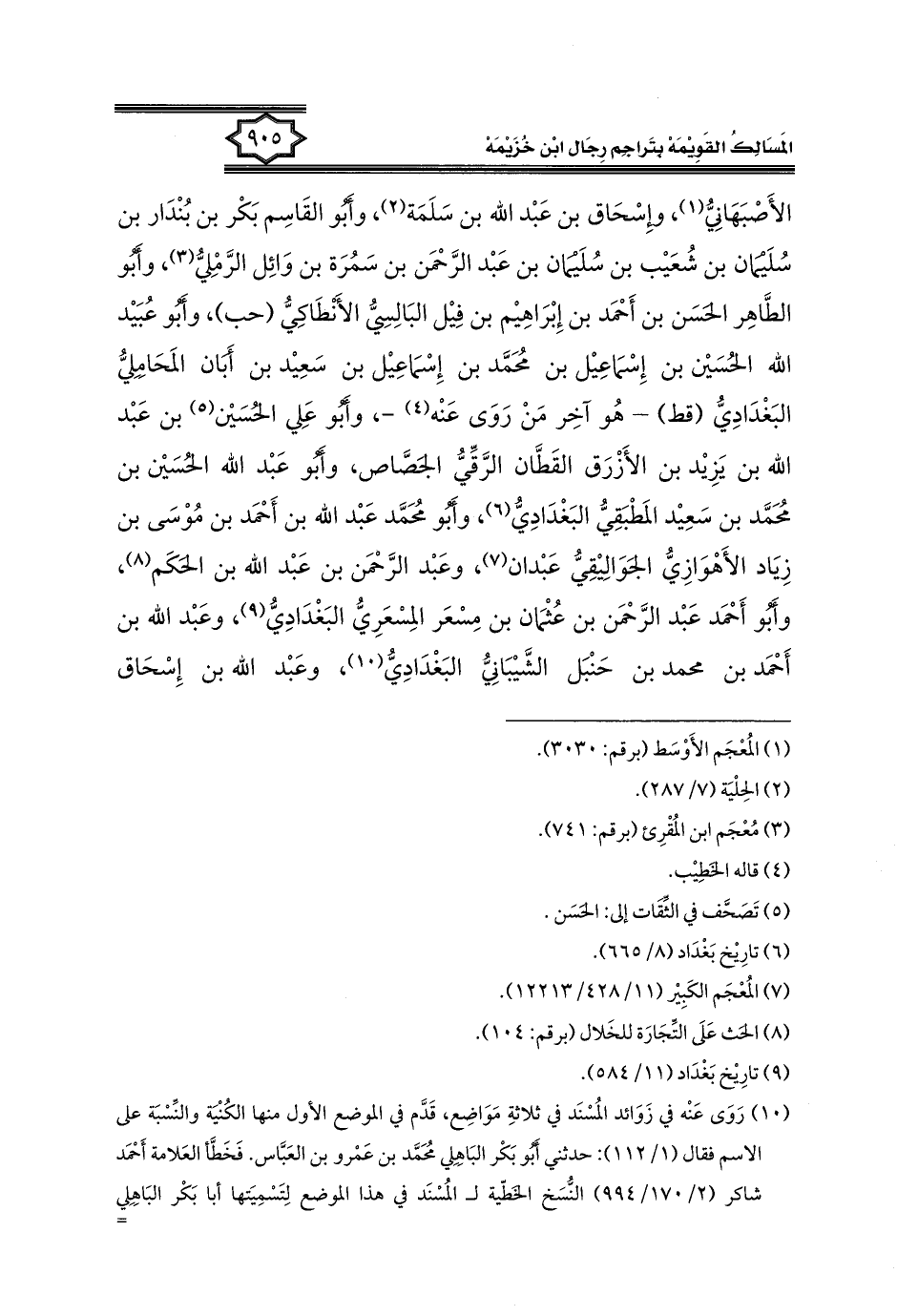 كتاب المسالك القويمة بتراجم رجال ابن خزيمة في الصحيح، والتوحيد، والفوائد (اسم الجزء: 2)
