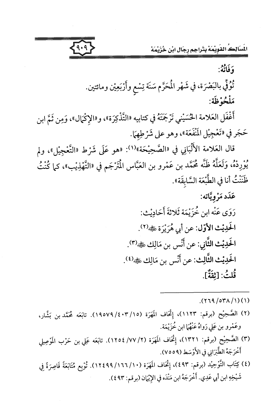 كتاب المسالك القويمة بتراجم رجال ابن خزيمة في الصحيح، والتوحيد، والفوائد (اسم الجزء: 2)