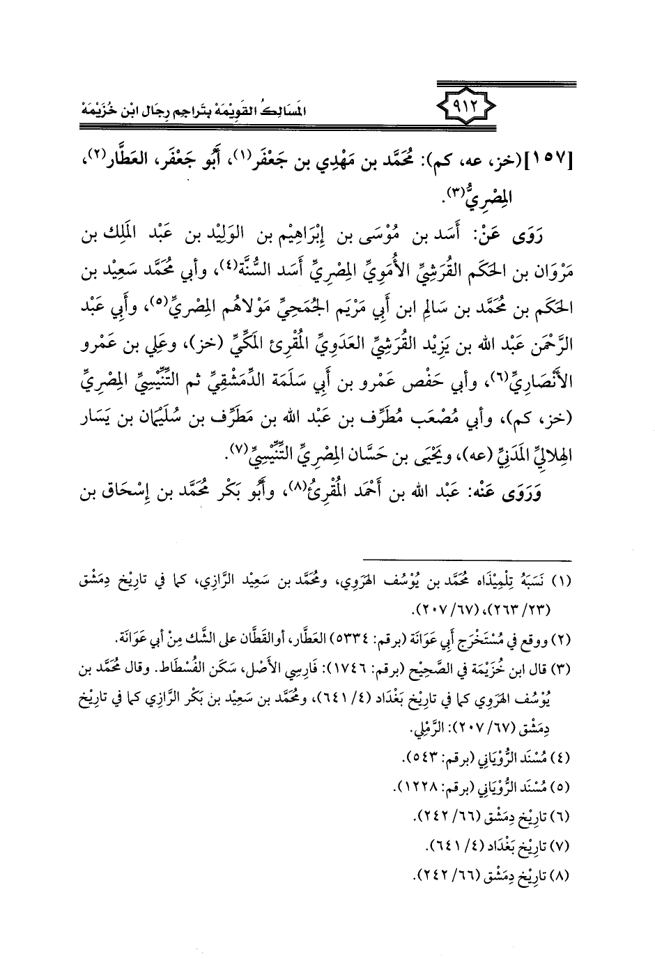 كتاب المسالك القويمة بتراجم رجال ابن خزيمة في الصحيح، والتوحيد، والفوائد (اسم الجزء: 2)