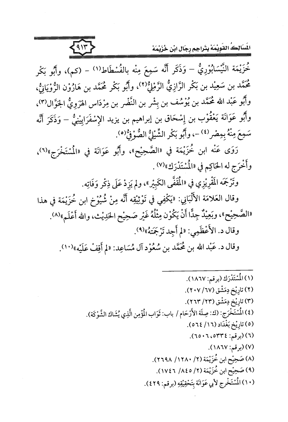 كتاب المسالك القويمة بتراجم رجال ابن خزيمة في الصحيح، والتوحيد، والفوائد (اسم الجزء: 2)
