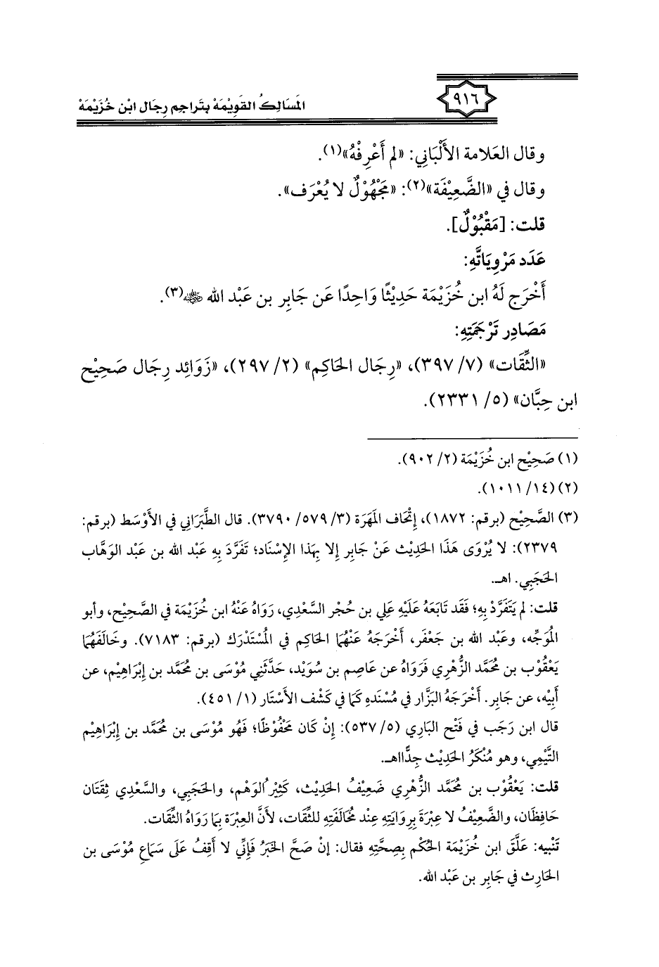 كتاب المسالك القويمة بتراجم رجال ابن خزيمة في الصحيح، والتوحيد، والفوائد (اسم الجزء: 2)