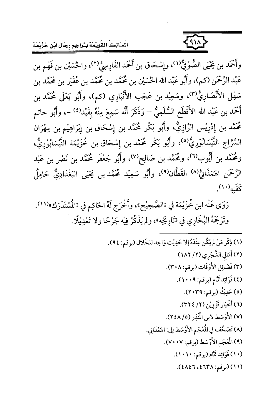 كتاب المسالك القويمة بتراجم رجال ابن خزيمة في الصحيح، والتوحيد، والفوائد (اسم الجزء: 2)
