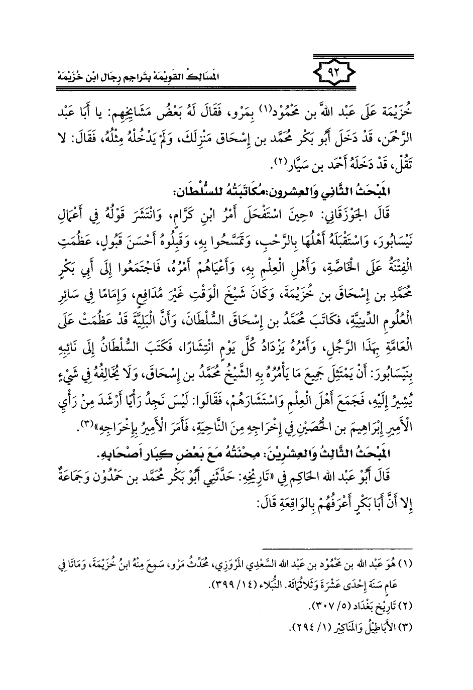 كتاب المسالك القويمة بتراجم رجال ابن خزيمة في الصحيح، والتوحيد، والفوائد (اسم الجزء: 1)