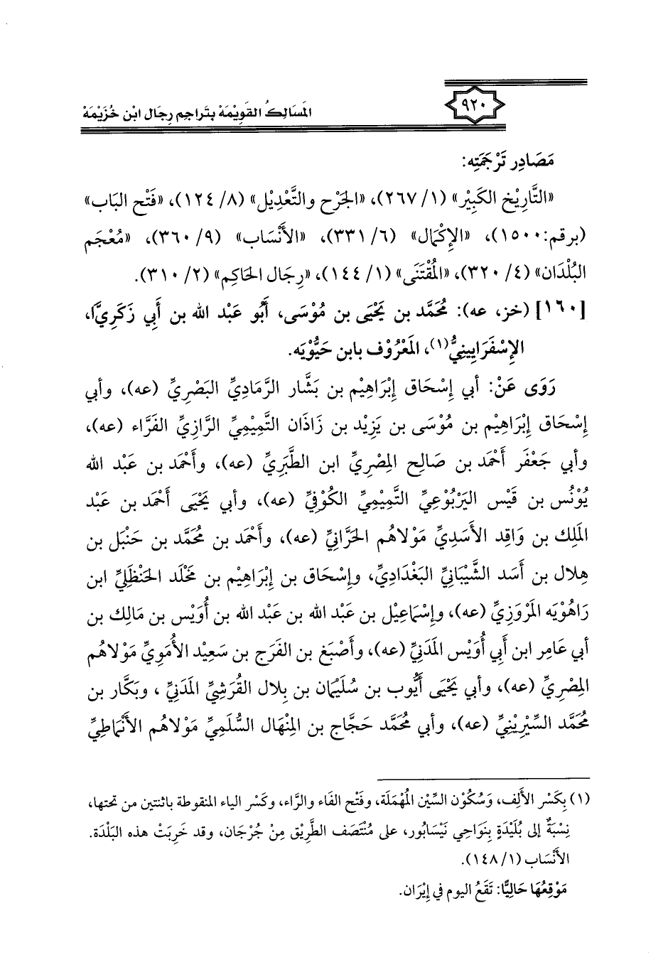 [١٦٠] (خز، عه): مُحَمَّد بن يَحْيَى بن مُوْسَى، أبُو عَبْد الله بن أَبِي زَكَرِيَّا، الإِسْفَرَايِينِيُّ (١)، المَعْرُوْف بابن حَيُّوْيَه.