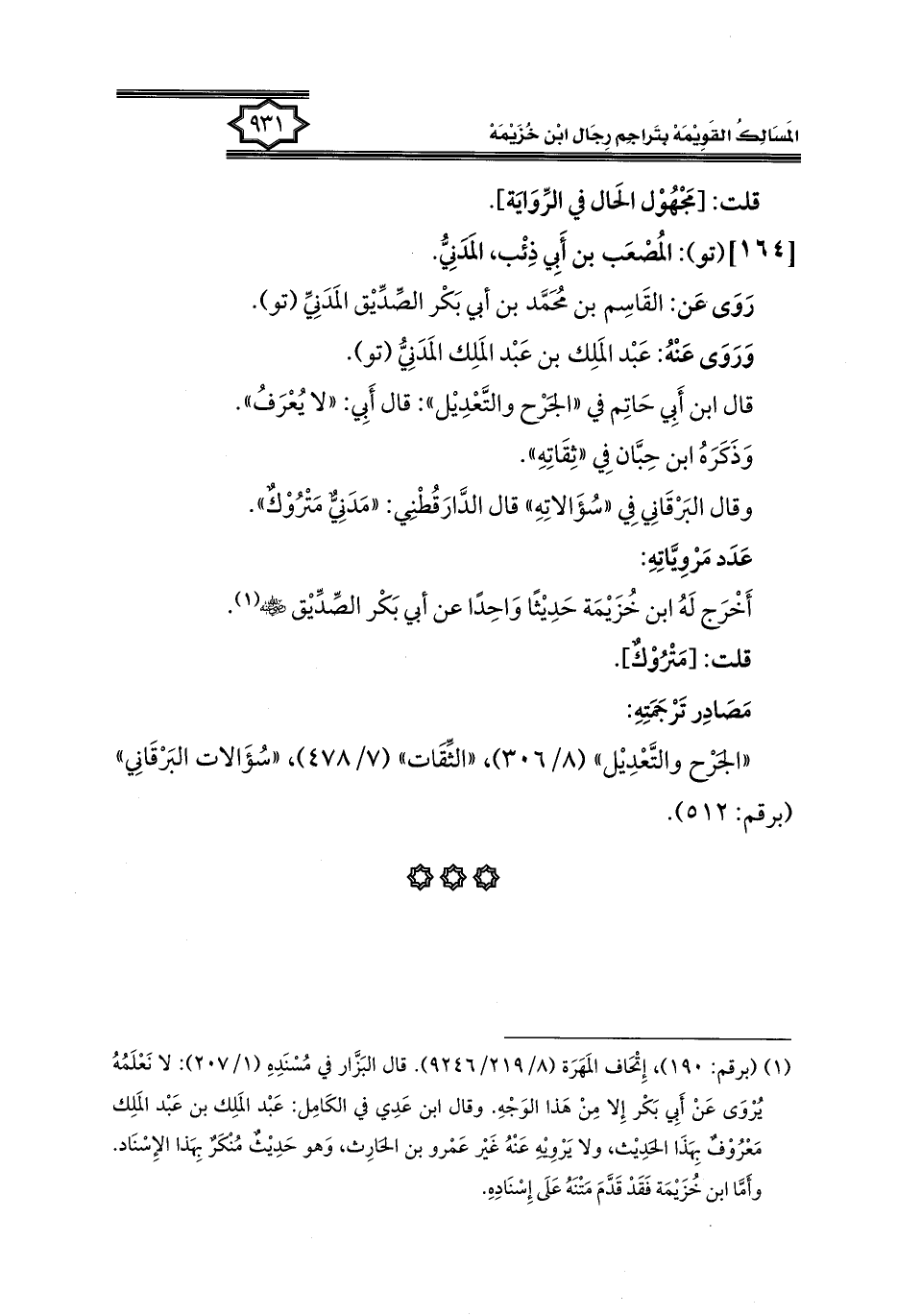 كتاب المسالك القويمة بتراجم رجال ابن خزيمة في الصحيح، والتوحيد، والفوائد (اسم الجزء: 2)
