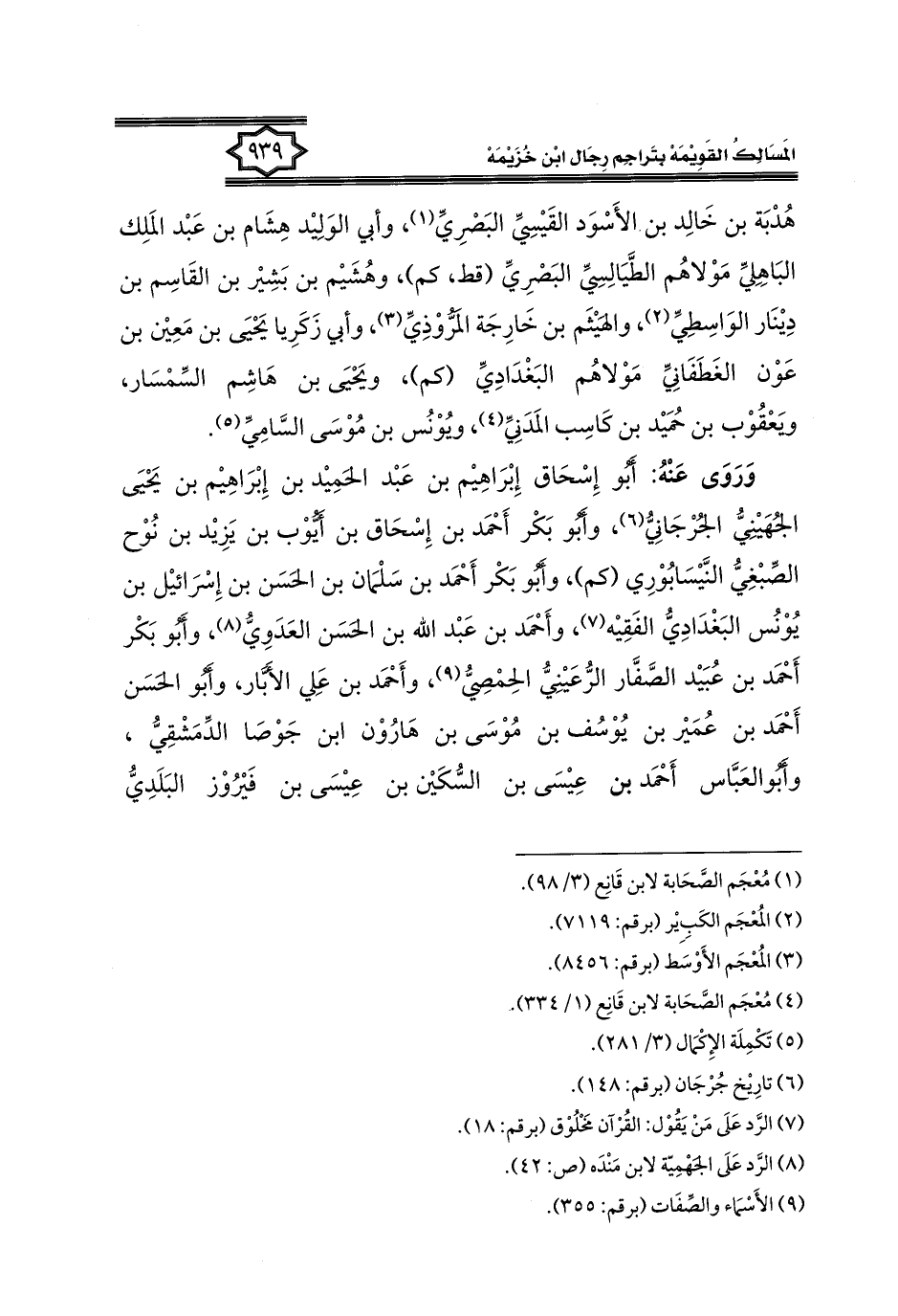 كتاب المسالك القويمة بتراجم رجال ابن خزيمة في الصحيح، والتوحيد، والفوائد (اسم الجزء: 2)