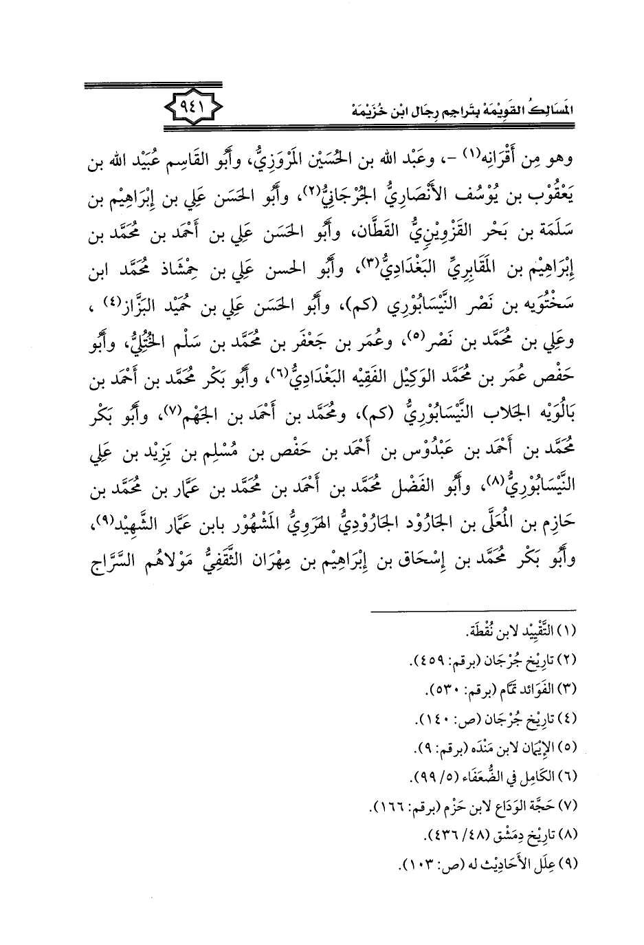 كتاب المسالك القويمة بتراجم رجال ابن خزيمة في الصحيح، والتوحيد، والفوائد (اسم الجزء: 2)