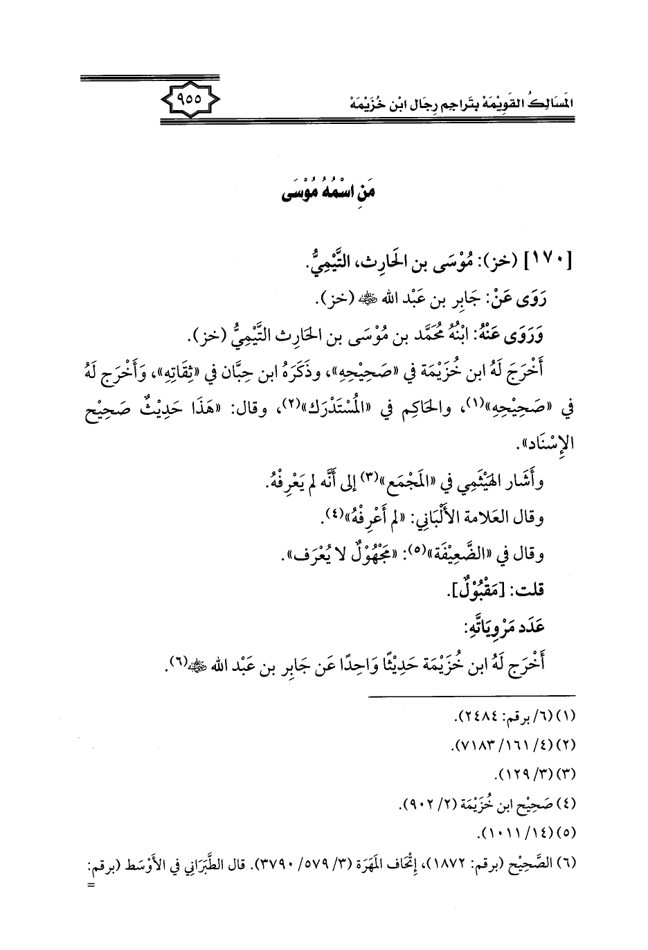 [١٧٠] (خز): مُوْسَى بن الحَارِث، التَّيْمِيُّ.
