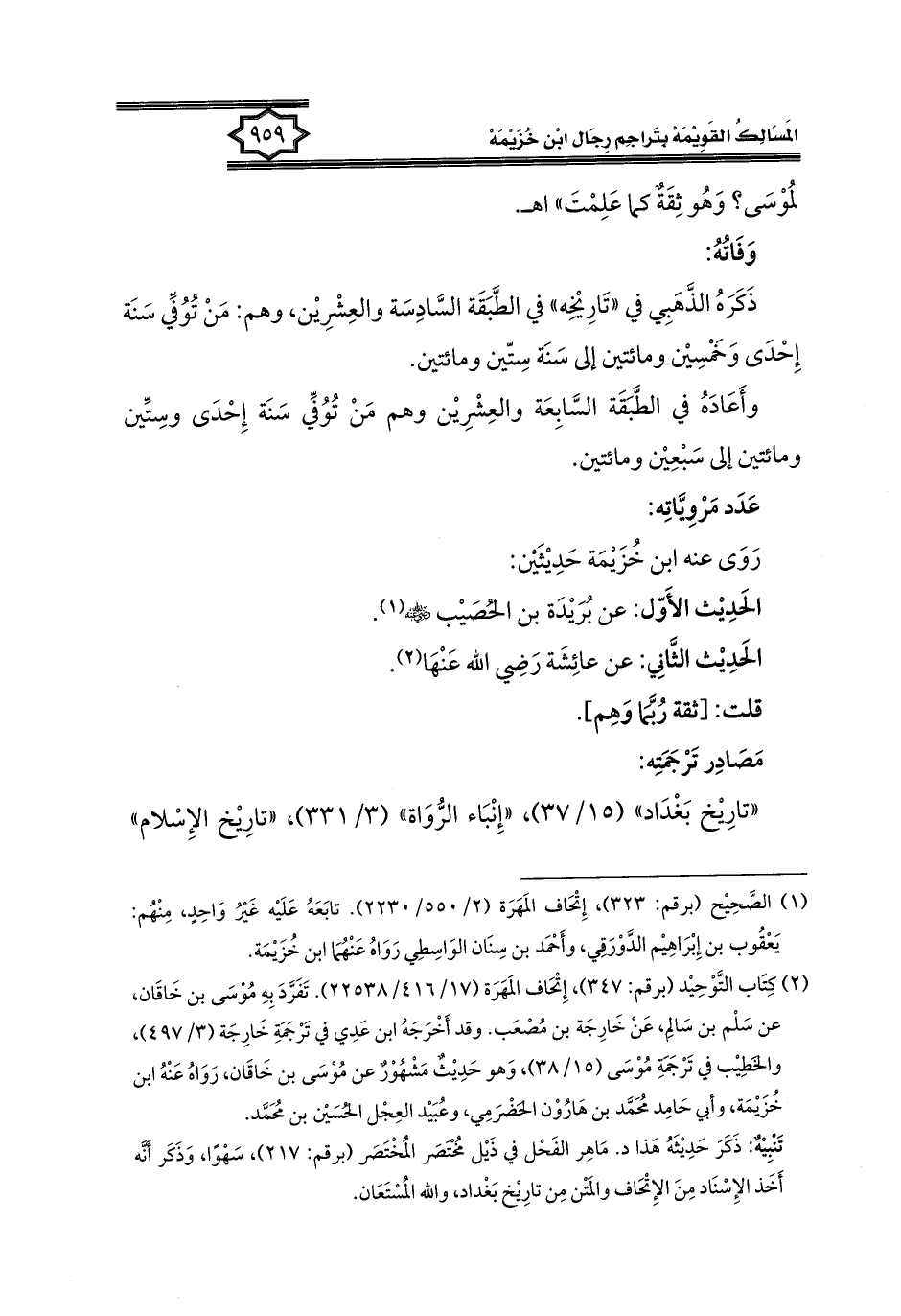 كتاب المسالك القويمة بتراجم رجال ابن خزيمة في الصحيح، والتوحيد، والفوائد (اسم الجزء: 2)