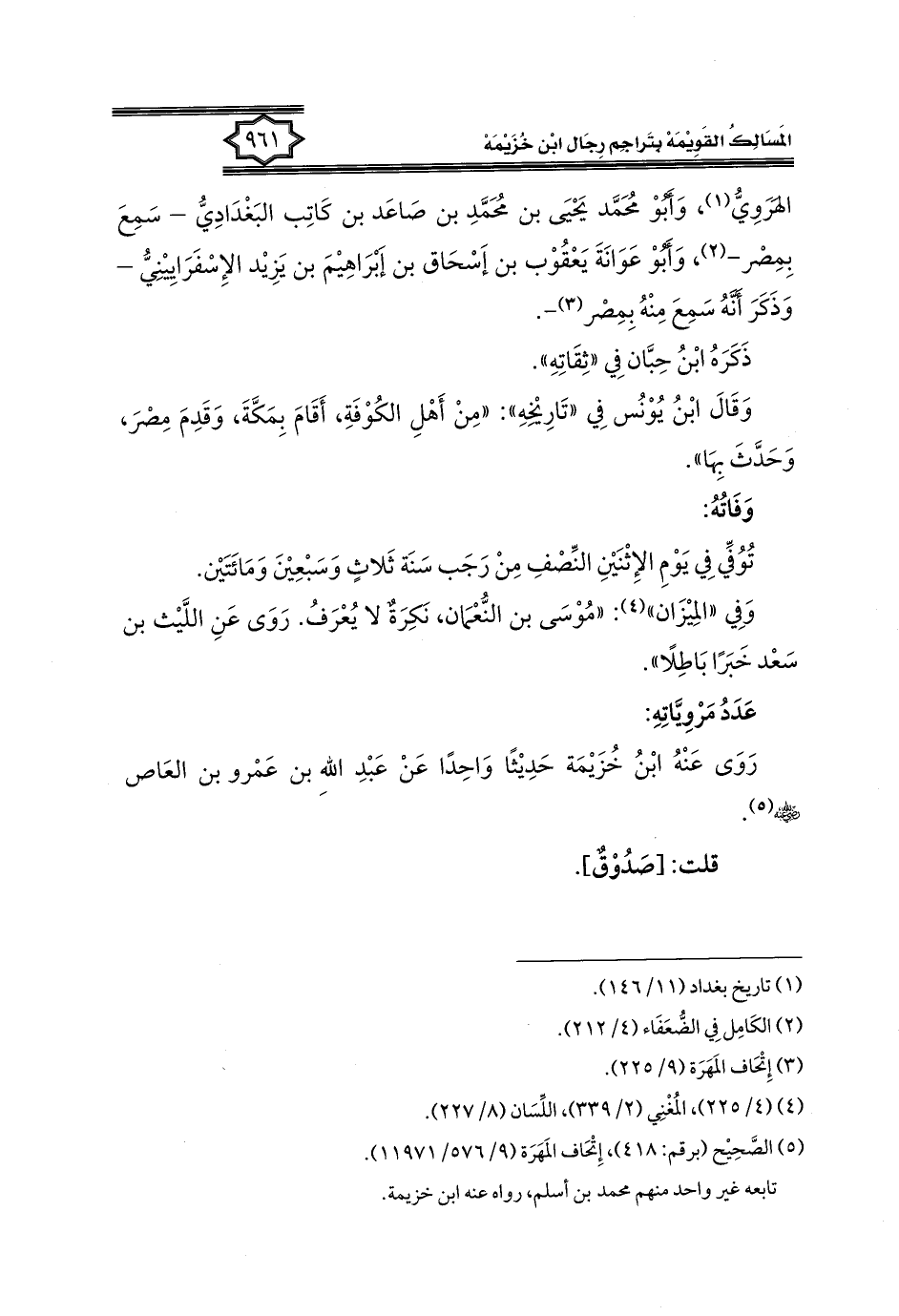 كتاب المسالك القويمة بتراجم رجال ابن خزيمة في الصحيح، والتوحيد، والفوائد (اسم الجزء: 2)