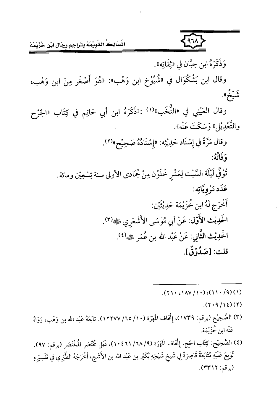 كتاب المسالك القويمة بتراجم رجال ابن خزيمة في الصحيح، والتوحيد، والفوائد (اسم الجزء: 2)
