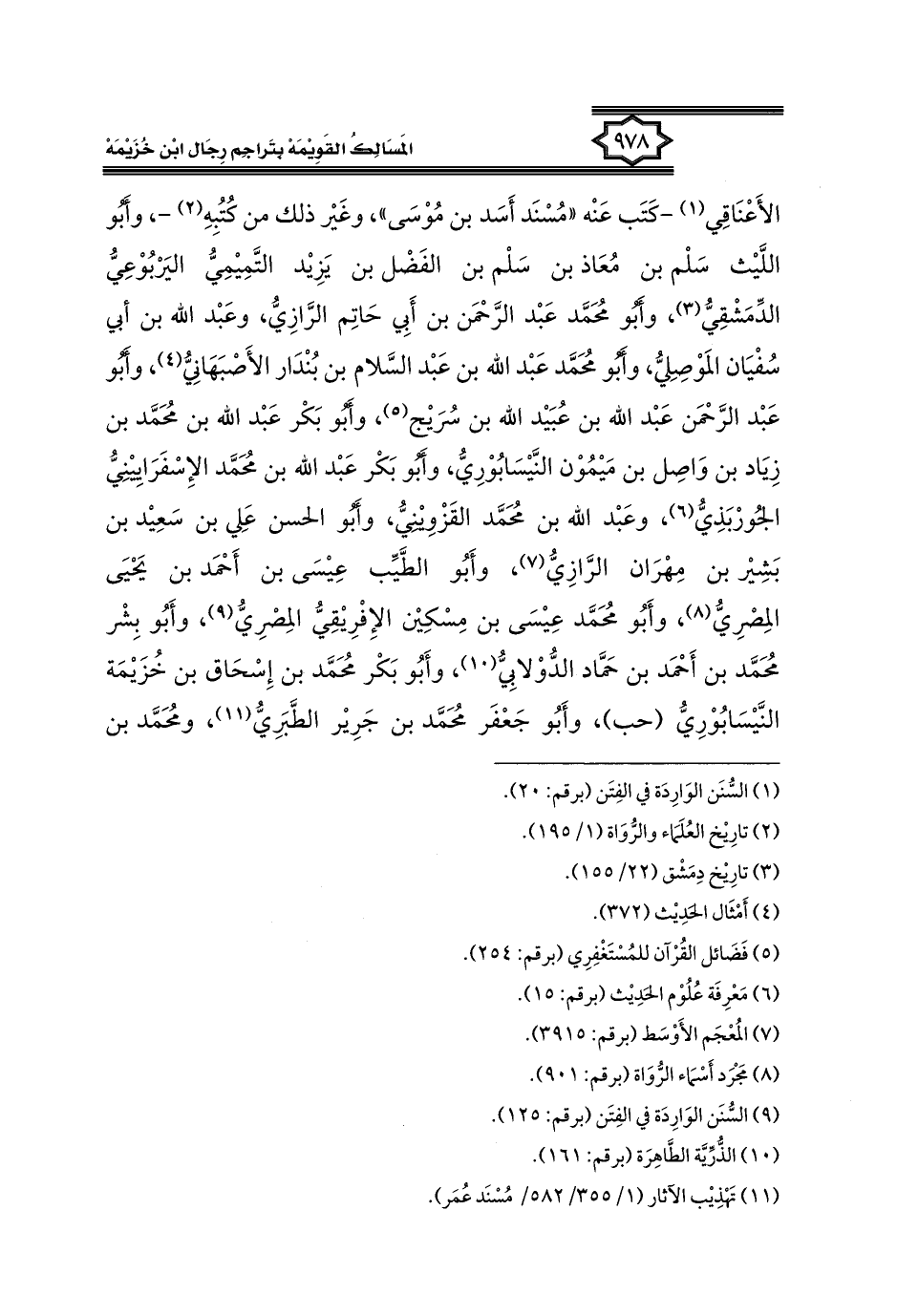كتاب المسالك القويمة بتراجم رجال ابن خزيمة في الصحيح، والتوحيد، والفوائد (اسم الجزء: 2)