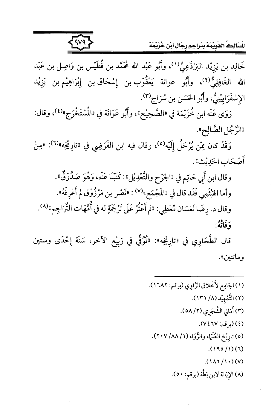 كتاب المسالك القويمة بتراجم رجال ابن خزيمة في الصحيح، والتوحيد، والفوائد (اسم الجزء: 2)
